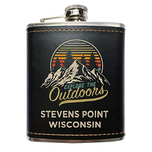 Stevens Point Wisconsin Explore The Outdoors Souvenir Black Leather Wrapped Stainless Steel 7 Oz Flask Walmart Com